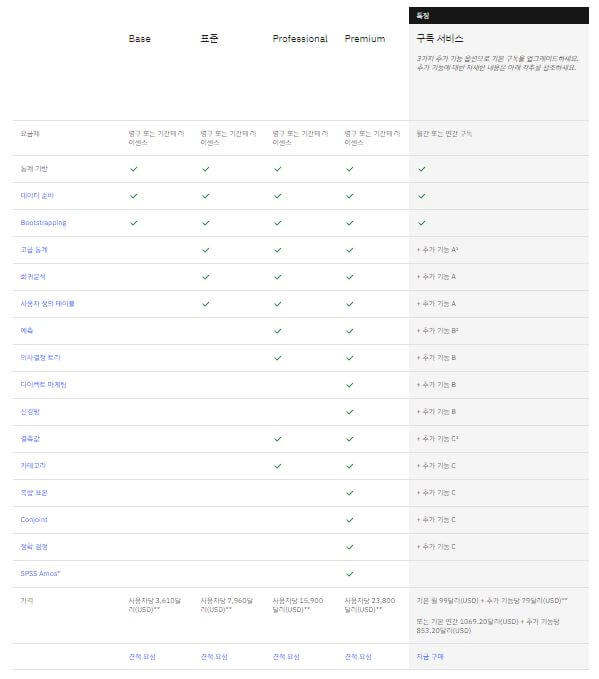 SPSS 프로그램 플랜별 구독 요금제 가격